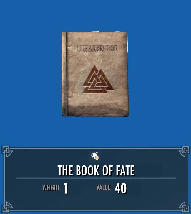 It is also possible that the pages of the Book of Fate appear. The item ID for The Book of Fate in Skyrim on Steam PC Mac is.
